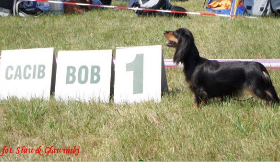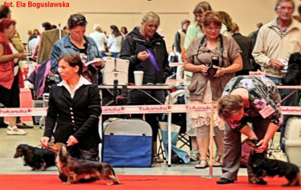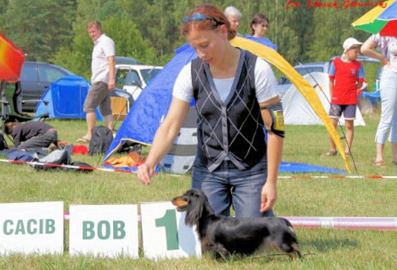 Na Litwie byliśmy bardzo silną ekipą polską, która to odniosła wielkie sukcesy, gdyż zajęła pierwsze lokaty w jamnikach długowłosych króliczych, miniaturowych i standardowych. Najbardziej cieszymy się z osiągnięć SZNURECZKA Brzdąc, czyli Wilemki,która to pierwszego dnia wystawy sędziowana przez Pana Hansa Boelaars z Holandii zdobyła 1 lokatę, ocenę doskonałą, CAC, CACIB, BOB (zwycięstwo rasy).