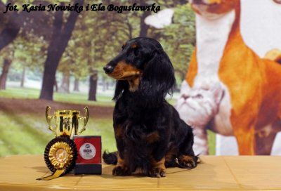 Suczka z doskonałym, amerykańskim rodowodem, pochodząca z hodowli EXCELLMAGIC z Rosji. W domu nazywana Happy- i to nie bez przyczyny- gdyż ma ona wyjątkowo wesołe usposobienie. Bardzo otwarta na kontakt, odważna i szczęścliwa z życia, co okazuje ciągłym merdaniem ogona. Dzielnie kroczy przez nowo poznawany świat, który postrzega jako niezmiernie interesujący .