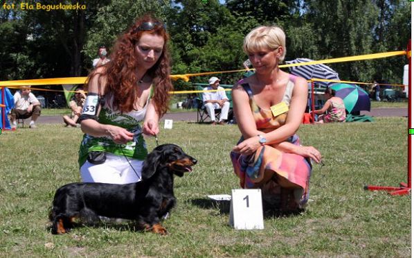 Na Litwie byliśmy bardzo silną ekipą polską, która to odniosła wielkie sukcesy, gdyż zajęła pierwsze lokaty w jamnikach długowłosych króliczych, miniaturowych i standardowych. Najbardziej cieszymy się z osiągnięć SZNURECZKA Brzdąc, czyli Wilemki,która to pierwszego dnia wystawy sędziowana przez Pana Hansa Boelaars z Holandii zdobyła 1 lokatę, ocenę doskonałą, CAC, CACIB, BOB (zwycięstwo rasy).